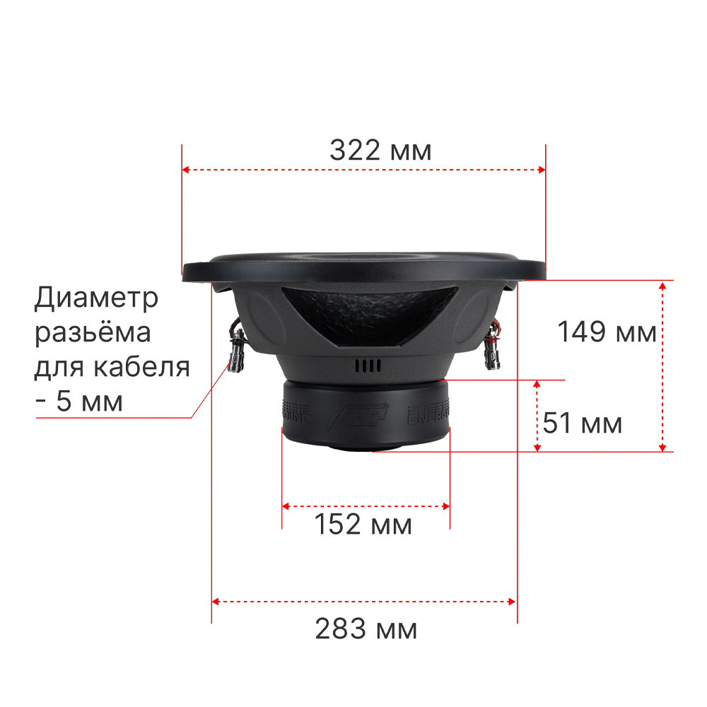 Внутренний диаметр 280 мм и вес 3000 граммов, делает его компактным и легким для установки в любом автомобиле. Он также оснащен проводами для подключения к усилителю, что упрощает процесс установки и использования.