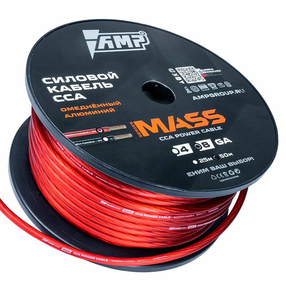 Силовой кабель AMP MASS 8Ga CCA Extremely flexible Красный алюминий