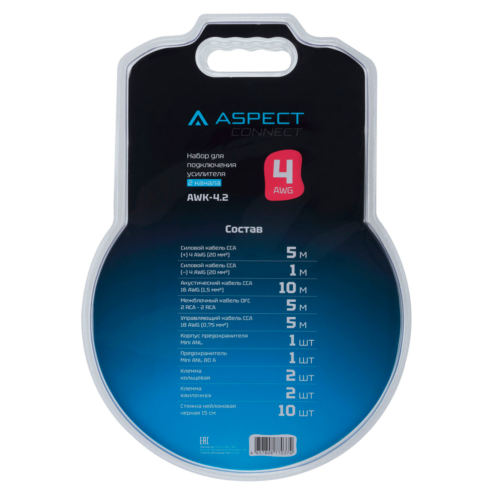 Установочный комплект ASPECT AWK-4.2 для надежного и безопасного подключения 2-х канального усилителя.