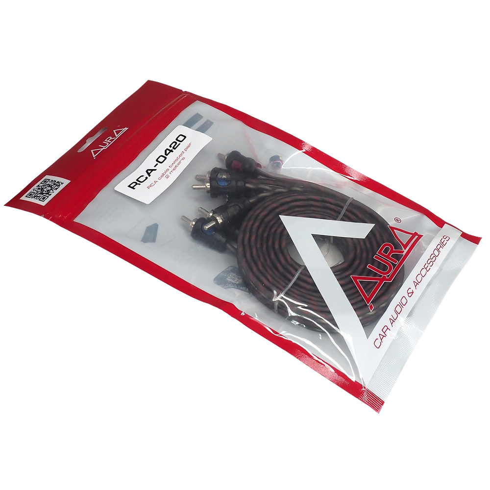 Aura RCA-0420 — межблочный кабель для автомобильной аудиосистемы с набором RCA-разъемов, рассчитанный на использование в системах с балансными/нормальными сигналами для подключения источника к усилителю или между компонентами аудиосистемы. Бюджетный межблочный кабель для штатного или апгрейдного подключения в автомобильных системах; хорош для повседневных задач.