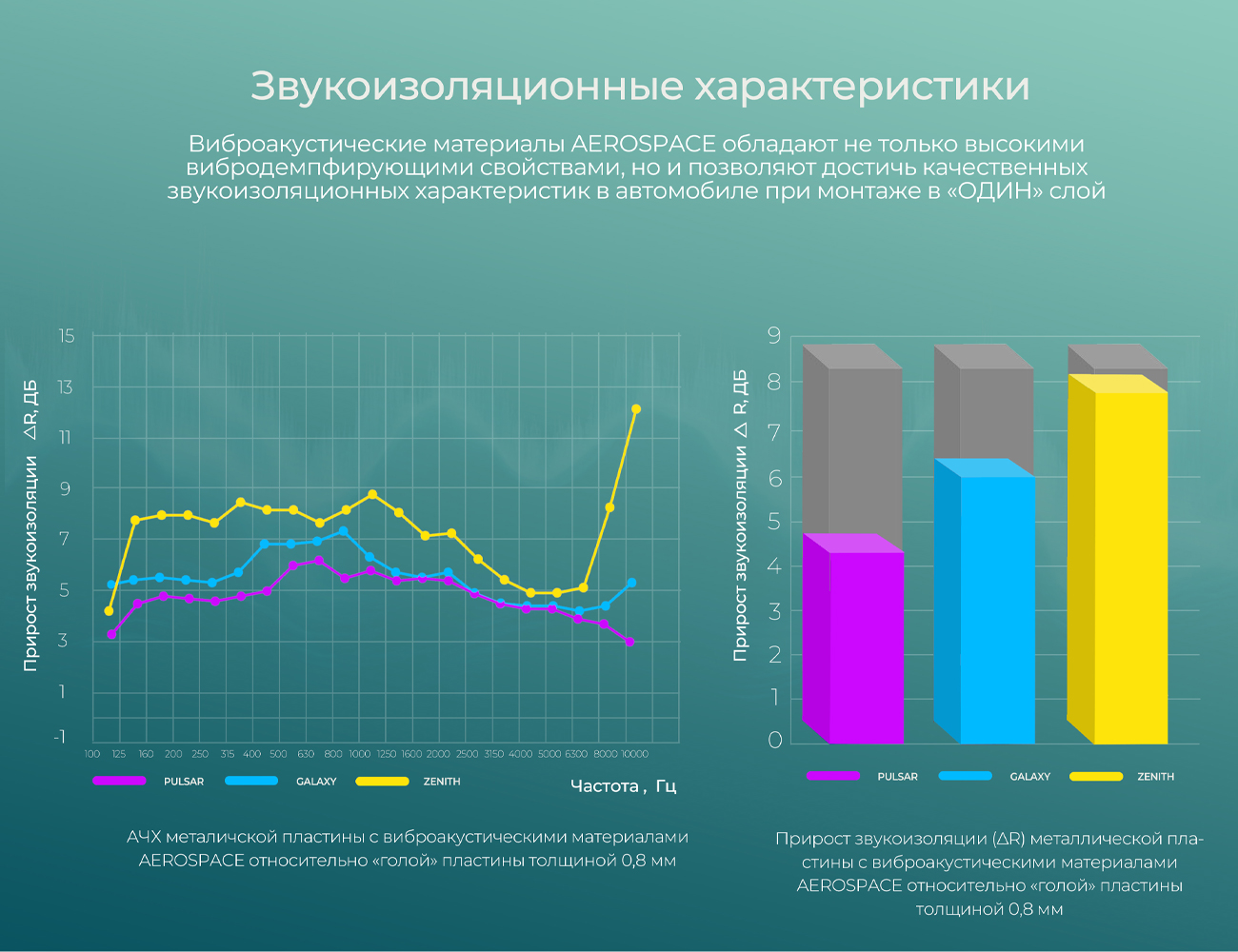 Подобная структура обеспечивает высокие вибродемпфирующие свойства и достигает высокие звукоизоляционные характеристики.