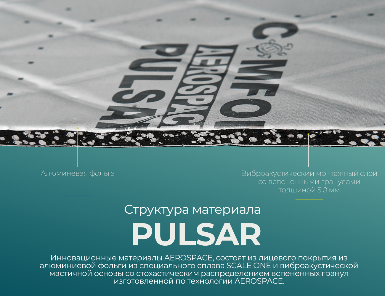 Не нужно переплачивать за лишние метры! ComfortMat Aerospace Pulsar создан для качественно шумоизоляции именно тех мест, которые в этом нуждаются больше всего.
