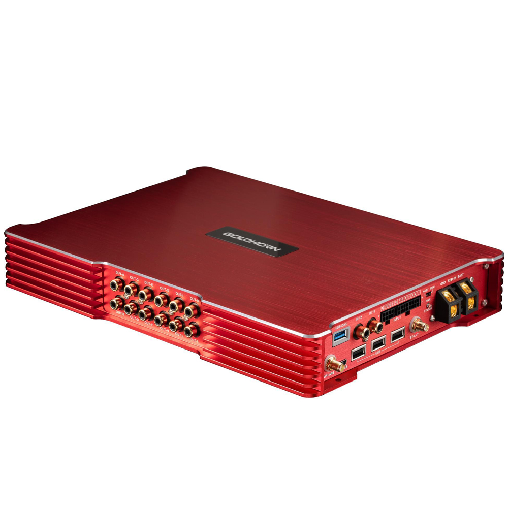 GOLDHORN P3 DSPA Plus - универсальное устройство для создания и настройки законченной аудиосистемы в вашем автомобиле. Вам не понадобится никакое дополнительное оборудование! GOLDHORN P3 DSPA Plus оснащен всем необходимым: встроенный Hi-Res аудиоплеер с поддержкой максимального количества форматов (включая WAV, Flac и DSD256), 12 – канальный звуковой процессор и 10-канальный усилитель D-класса с максимальной мощностью 8 x 80 Вт + 2 x 150 Вт (в мостовом режиме 300 Вт) на канал.