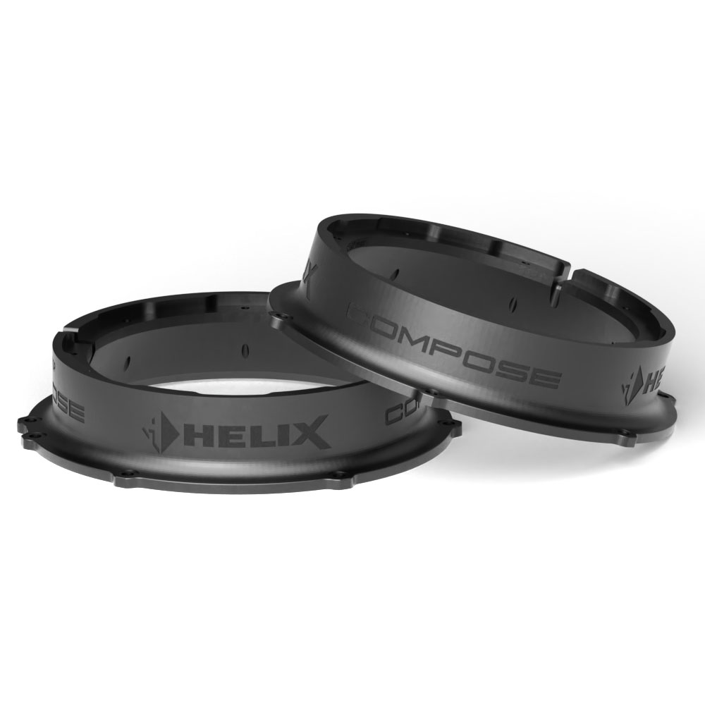 Они превращают ваш универсальный мидбасовый динамик HELIX COMPOSE диаметром 6,5 дюйма / 165 мм с технологией FlexMount165 в автомобильный динамик, обеспечивая простую установку в исходное монтажное положение автомобиля.