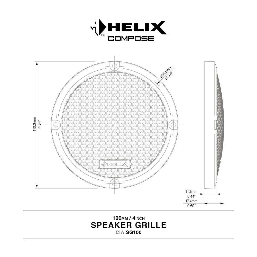 Иногда громкоговорители невозможно установить внутри автомобиля, чтобы избежать каких-либо механических воздействий. Особенно в нижней части дверных панелей, абсолютно необходимо обеспечить надежное покрытие чувствительных конусов громкоговорителей. Благодаря своей чрезвычайно прочной конструкции в виде специального шестигранника, решетка акустической системы COMPOSE CiA SG100 гарантирует оптимальную передачу звука и максимальную защиту.
