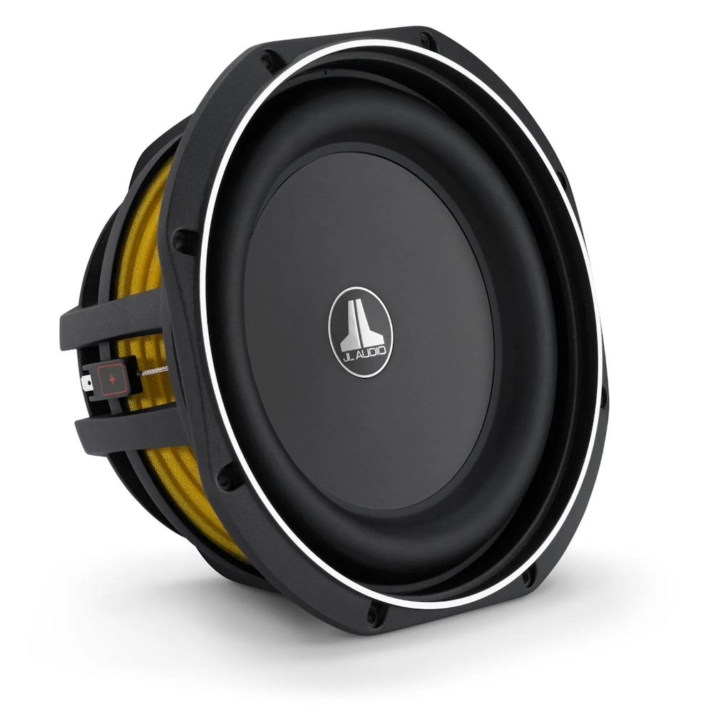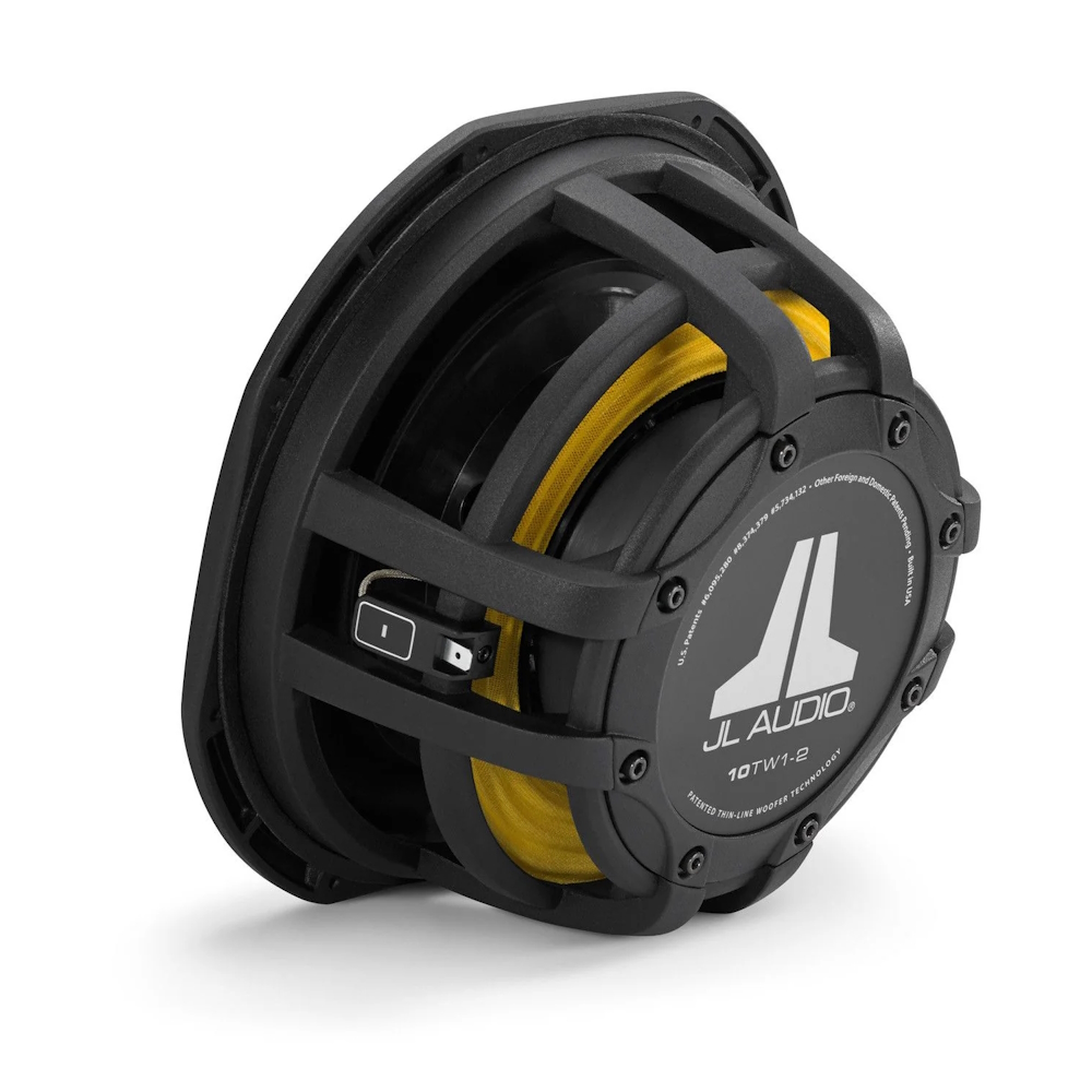 Качество звучания, глубина баса и мощность на уровне лучших полноразмерных сабвуферов традиционной конструкции в своей ценовой категории – под таким девизом рождена серия TW1 НЧ-динамиков JL Audio малой монтажной глубины (Thin). У 10TW1 монтажная глубина составляет 111 мм, а кроме того, этот динамик способен работать в корпусах экстремально малого объема – менее 10 л. Это рекордно малая величина среди всех сабвуферов JL Audio диаметром 250 мм (10") разных серий. Рекомендации по корпусам различного типа приведены ниже. Особенности конструкции позволяют размещение динамика практически вплотную к задней внутренней стенки корпуса. Кроме того, диаметр монтажного фланца гораздо меньше, чем у других динамиков данного типоразмера. С четырех сторон фланец имеет прямые зоны, что дополнительно уменьшает площадь и упрощает размещение в стесненных условиях. Значительно уменьшена высота открытой части динамика над монтажной поверхностью - с установленной защитной сеткой она составляет всего 22 мм. С такими данными 10TW1 становится незаменимым, когда от сабвуфера требуется только отличное качество звучания, а условия размещения сильно затруднены.