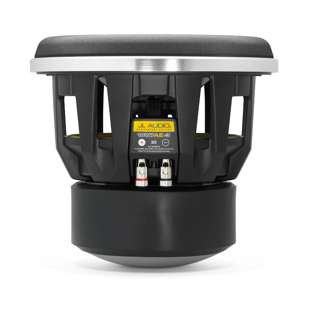 "Просто лучший сабвуфер из тех, что доводилось слышать," – чаще всего отзывы от искушенных любителей и профессиональных экспертов о сабвуферах W7AE выглядят именно так. 10W7AE очень популярного типоразмера 250 мм (10") особенно часто оказывается в роли эталонного басового звена в инсталляциях высшего класса. Такой размер удобен для установки в большинство автомобилей, и обеспечивает близкую к оптимальной площадь диффузора. Однако особо мощный 10W7AE способен на большее, чем принято ожидать от соразмерных моделей. В этом помогает уникальная конструкция, одной из особенностей которых выступает предельно большая амплитуда линейных колебаний (Xmax) подвижной системы – она составляет 23 мм. Кроме того, с диффузором W-Cone™ и подвесом OverRoll™ Surround эффективная площадь рабочей поверхности выше, чем у большинства 250-мм сабвуферов разных производителей. В защищенной множеством патентов конструкции динамика подвергнут тщательному усовершенствованию и оптимизации буквально каждый элемент, вплоть до внутренних крепежных резьбовых соединений.