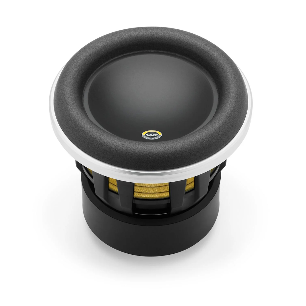 "Просто лучший сабвуфер из тех, что доводилось слышать," – чаще всего отзывы от искушенных любителей и профессиональных экспертов о сабвуферах W7AE выглядят именно так. 8W7AE – младший по размеру в серии, однако он способен перевернуть представления о возможностях автомобильных сабвуферов вообще, и 200-мм (8") в частности. Полностью разделяя такие достоинства флагманской серии, как безупречная точность и чистота звучания, исключительные скоростные данные и высокая допустимая мощность, этот НЧ-динамик способен на нетипичную для малоразмерных моделей глубину баса, особенно при установке в корпус с фазоинвертором. В этом помогает уникальная конструкция, одной из особенностей которых выступает предельно большая амплитуда линейных колебаний (Xmax) подвижной системы – она составляет 19 мм. Кроме того, с диффузором W-Cone™ и подвесом OverRoll™ Surround эффективная площадь рабочей поверхности выше, чем у большинства сабвуферов такого типоразмера разных производителей. В защищенной множеством патентов конструкции динамика подвергнут тщательному усовершенствованию и оптимизации буквально каждый элемент, вплоть до внутренних крепежных резьбовых соединений.