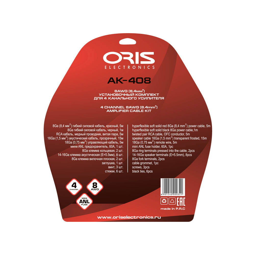 Набор проводов для подключения четырёхканального усилителя 8Ga -ORIS AK-408
