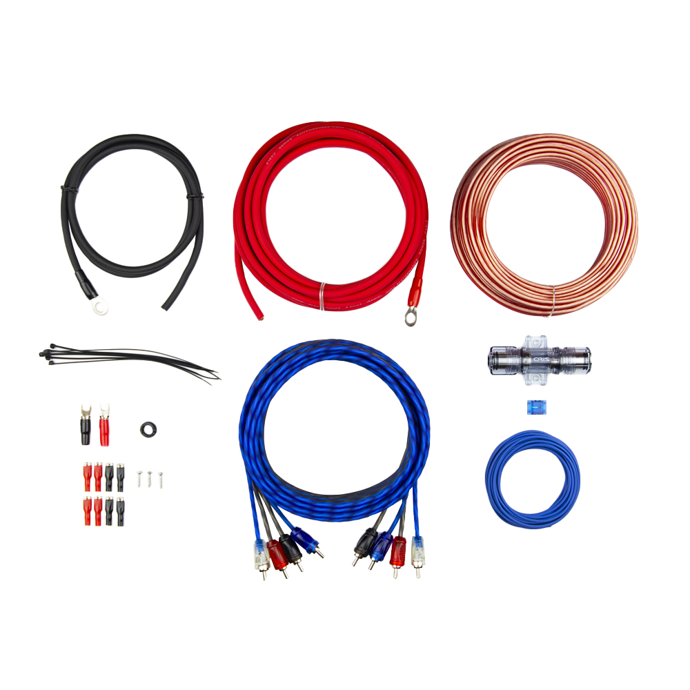 Комплект высококачественных кабелей и монтажных аксессуаров для подключения 4-канального усилителя. Гибкие силовые кабели и акустический кабель из омедненного алюминия, межблочный кабель - витая пара из бескислородной меди и все необходимые клеммы и аксессуары.