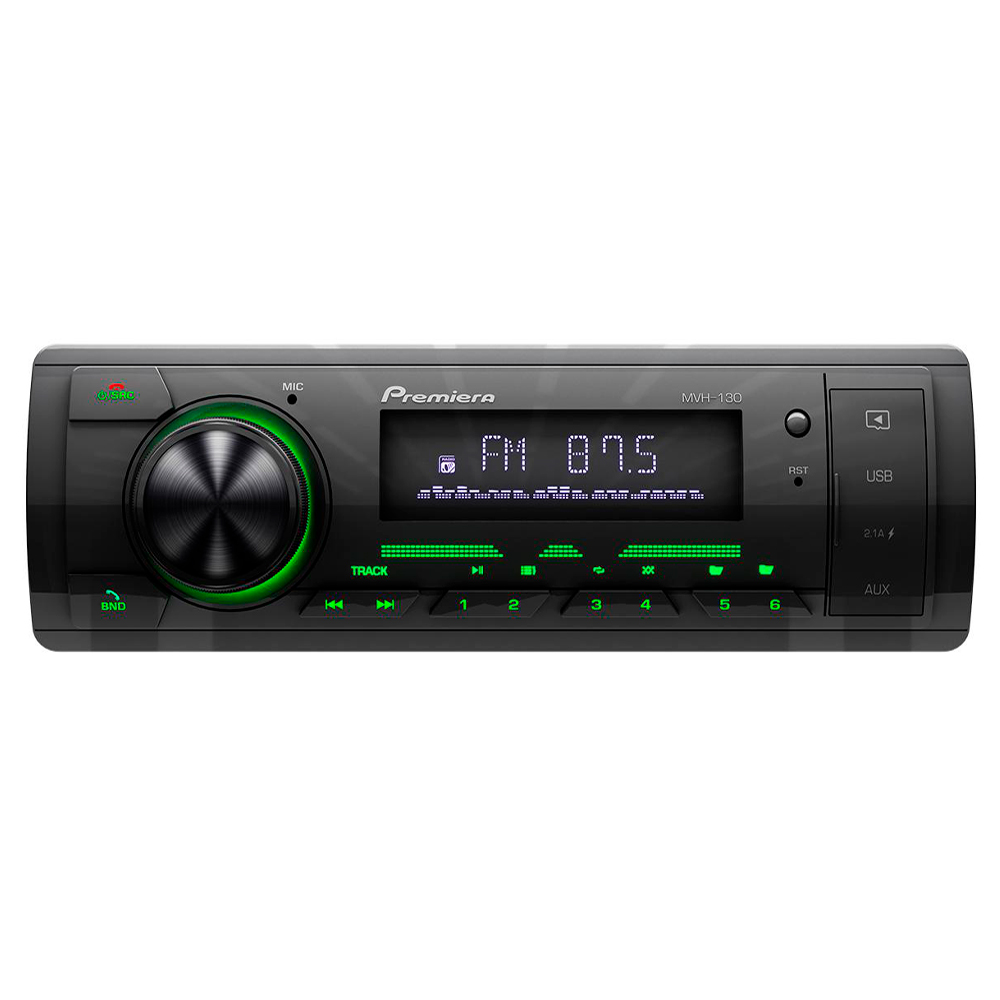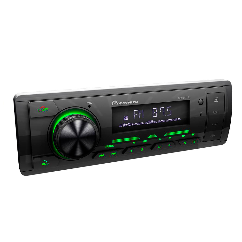 Premiera MVH-130 FM/ SD/ USB ресивер с поддержкой беспроводной технологии Bluetooth — это современная и многофункциональная автомагнитола стандартного установочного размера 1DIN, которая при этом имеет минимальную монтажную глубину — всего 35 мм.