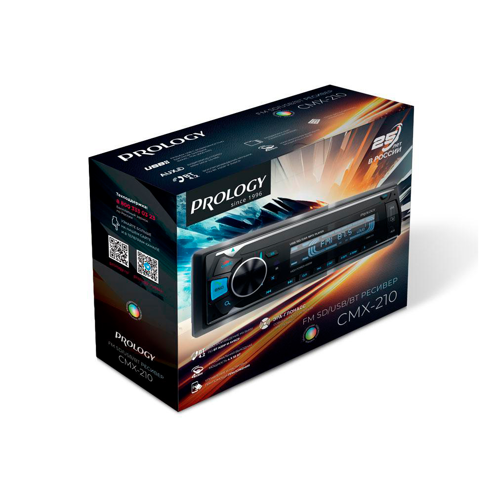 Prology CMX-210 — FM SD/USB ресивер с Bluetooth, это автомагнитола стандартного размера 1DIN, которая обеспечивает прием радиостанций в диапазоне FM, воспроизведение медиафайлов, записанных на карты памяти USB / microSD, передачу звука с внешних источников, а также управление мобильным телефоном через интерфейс Bluetooth (ver. 4,2). Кроме того, устройством можно управлять с помощью приложения, установленного на Ваш смартфон с операционной системой Android.