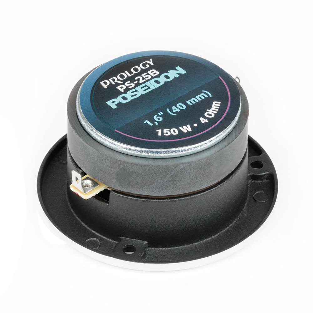 Prology PS-25B Poseidon — рупорные высокочастотные динамики в литом алюминиевом корпусе с полированной передней панелью и титановым диффузором. Номинальная мощность (RMS) 60 Вт и чувствительность 103 дБ позволят добиться насыщенного деталями и неискаженного звучания громкой или эстрадной автомобильной инсталляции на максимально высоких уровнях громкости. Твитеры PS-25B Poseidon расширят возможности автомобильной аудиосистемы, позволив полнее насладиться ярким детальным звучанием — с ними даже штатная система заиграет новыми красками. Динамики станут прекрасным дополнением к любым акустическим системам.