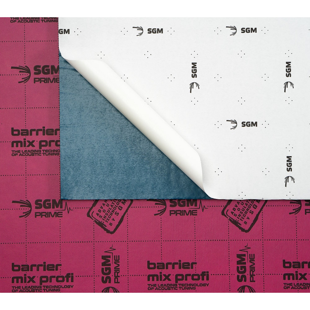 SGM Barrier Mix - мембранный материал нового поколения с дополнительным вибродемпфирующим эффектом. Самый эффективный и высокоплотный из всех существующих на рынке мембранных звукоизолирующих материалов для автомобилей. При толщине 6 мм обеспечивает звукоизоляцию до 35 дБ. Эффективность работы SGM Barrier Mix достигается посредством принципа резонансного звукопоглощения, что не применялось в сфере автомобильной шумоизоляции до настоящего времени и стало возможным благодаря специально подобранному и рассчитанному сочетанию характеристик составляющих слоевки.