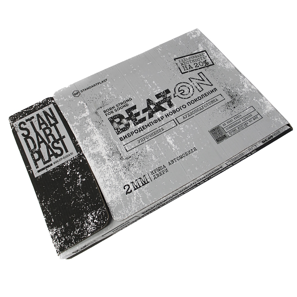 Материал, разработанный с учетом предпочтений меломанов и участников автозвуковых соревнований категории Sound Quality. Используется для виброизоляции с уклоном в акустическую коррекцию и аудиоподготовку. Beat-on придает дополнительной жесткости металлу дверей и крыши, что позволяет снизить уровень структурного низкочастотного гула и положительно сказывается на звучании автомобильной акустики.
