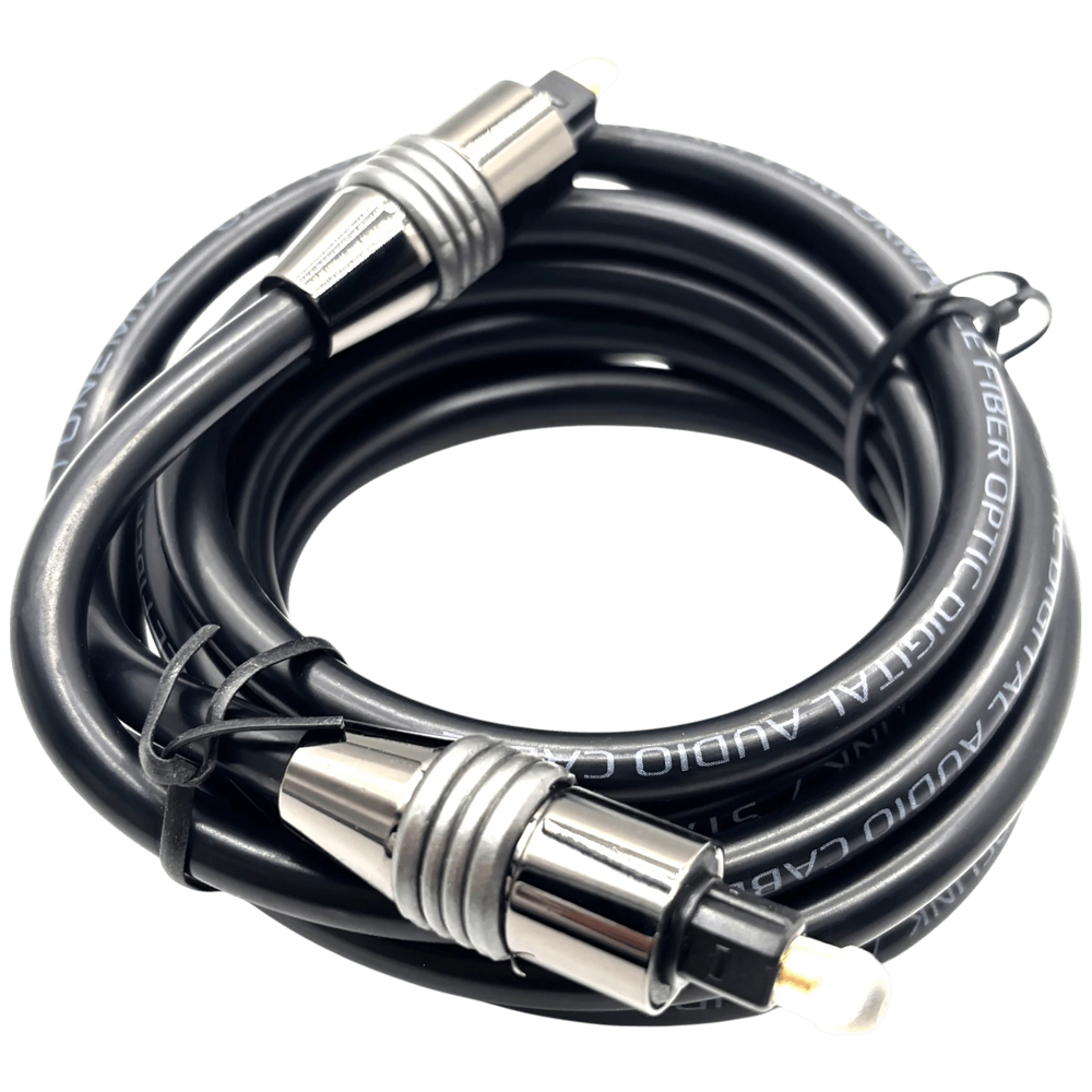 Разъемы Toslink выполнены из прочного пластика, фиксируются в гнездах с характерным щелчком, что исключает случайное выпадение кабеля. Конструкция предусматривает прямые штекеры типа Male‑Male, позолоченные контакты повышают надежность соединения.
